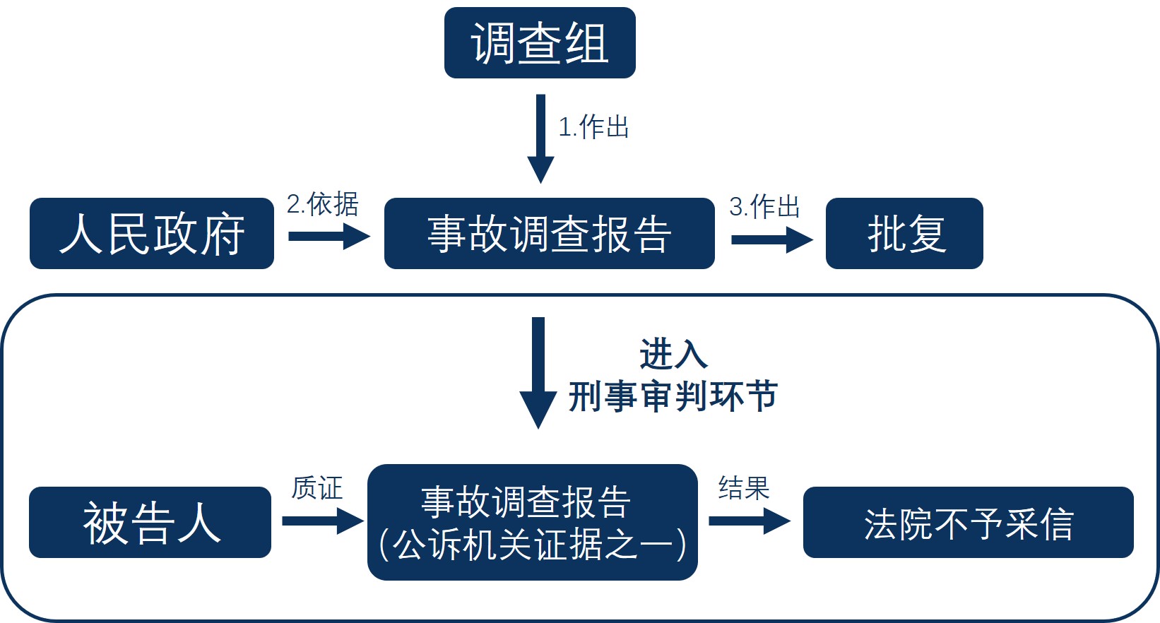 在前面一系列的环节下来之后,若事故责任者涉嫌犯罪的,则会进入刑事审判环节,其中,调查组作出的事故调查报告会被公诉机关作为证据使用,可以多方面对事故调查报告进行质证,若质证成功,法院不予采信该事故调查报告,这样也能达到一开始的救济目的。