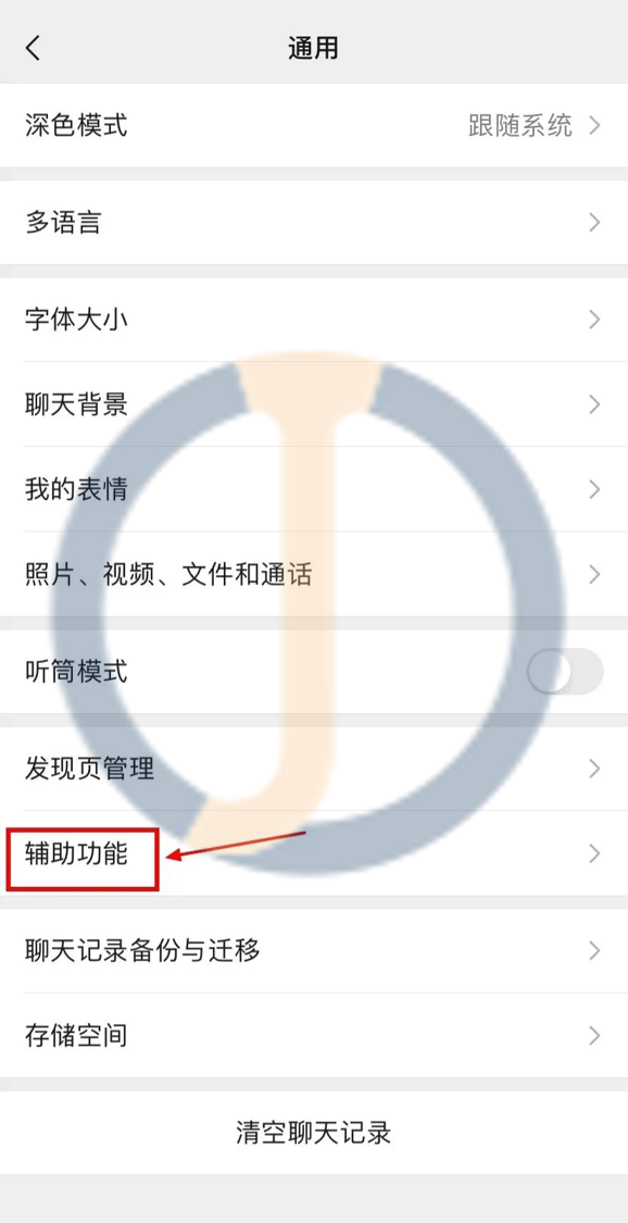第一步:打开微信,依次点击“我”——“设置”——“通用”——“辅助功能”。