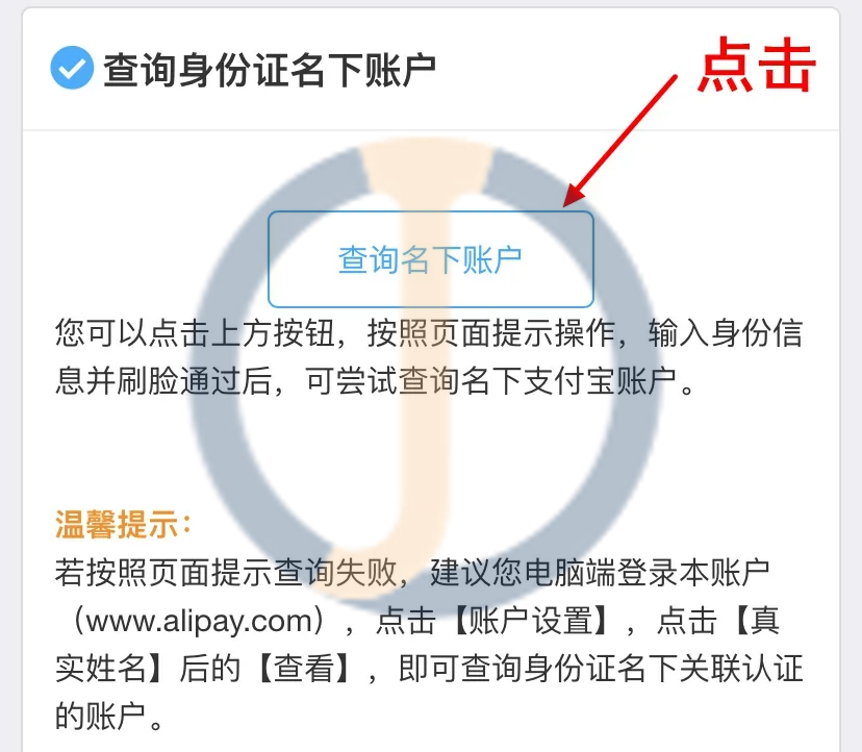 第二步:点击「查询身份证名下账户」。